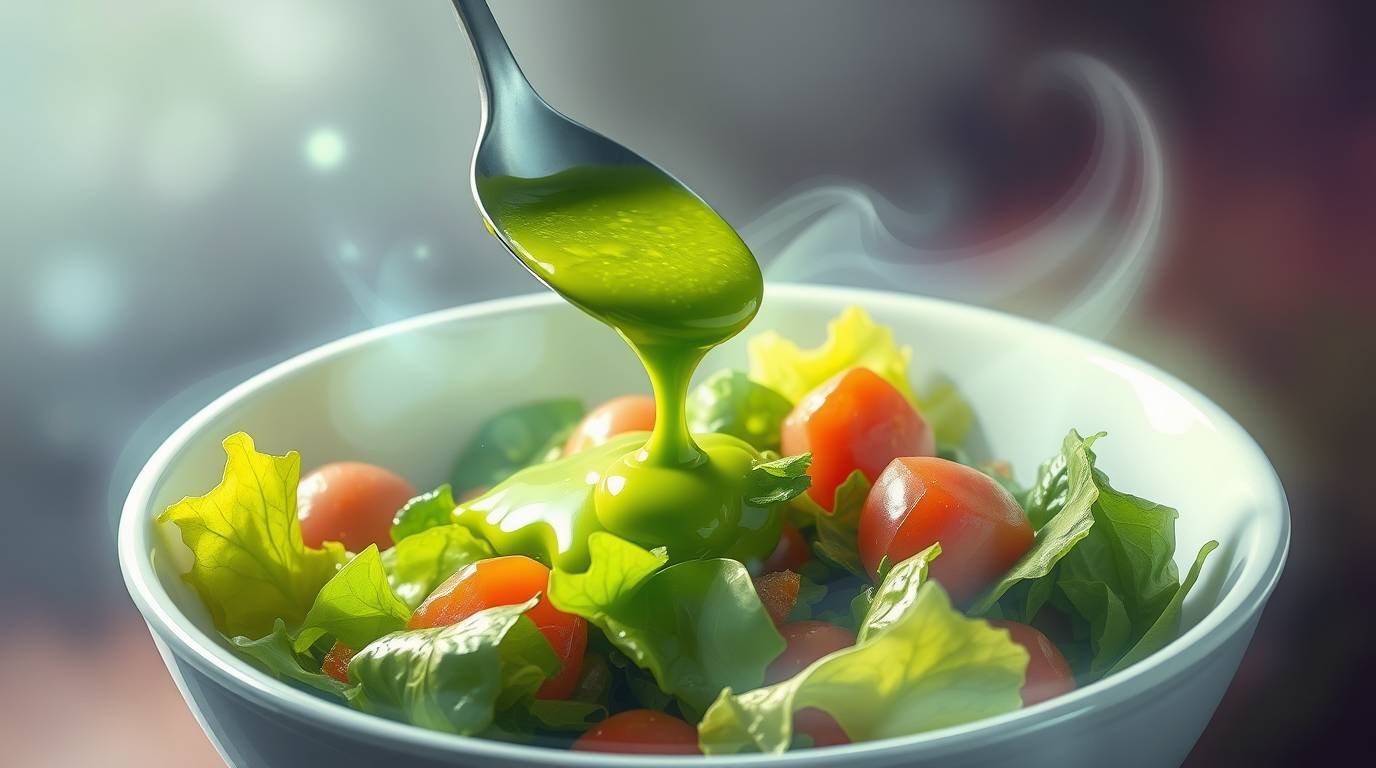 Drizzle the Greene Sauce over the salad, ensuring each component is lightly coated.