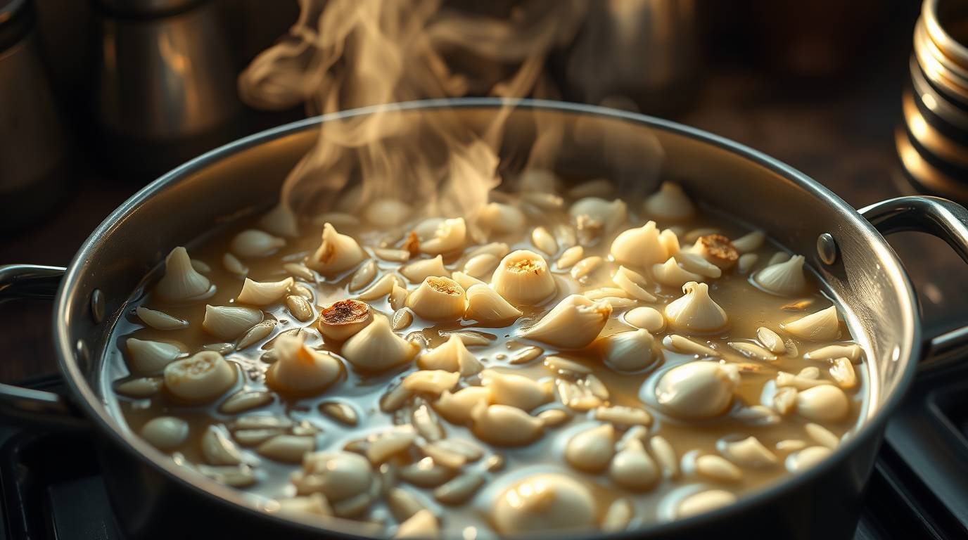 Avoid boiling too vigorously; a gentle simmer allows the ingredients to infuse the broth with their rich flavors.