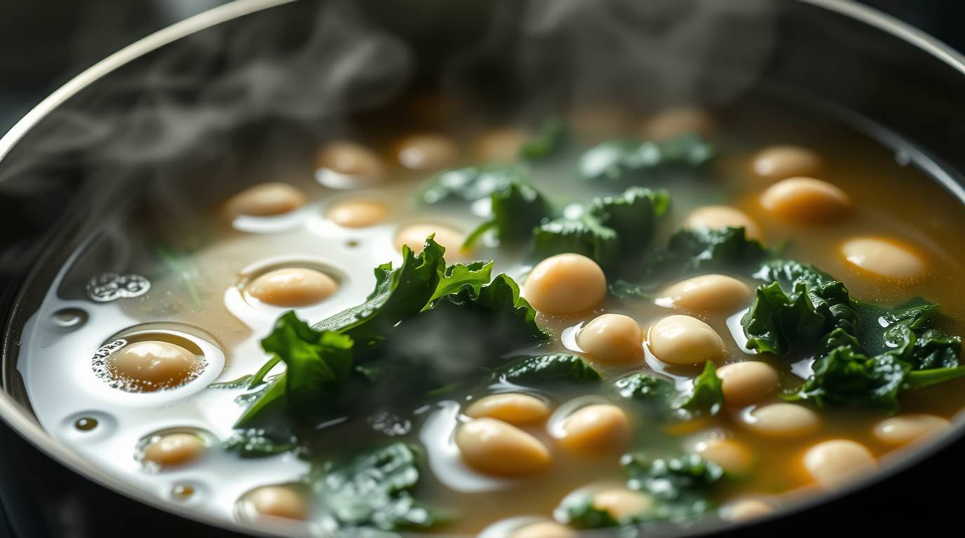 Delight in a wholesome, nourishing soup that combines the earthy goodness of kale with the creamy texture of cannellini beans. Perfect for any season.