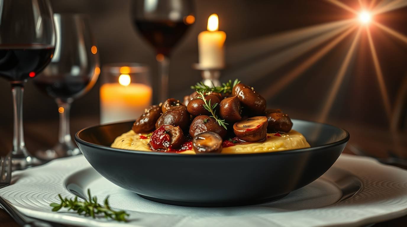 Imagine the rich aroma of red wine mingling with the earthy scent of mushrooms, wafting through your kitchen like the embrace of an old friend. This dish is a symphony of flavors, where each ingredient plays its part harmoniously. The deep, robust taste of the wine envelops the mushrooms, infusing them with a complexity that evokes the rustic charm of an Italian countryside. It's a dish that nourishes the soul as much as it delights the palate, reminiscent of a long, languid meal shared with family and friends.
