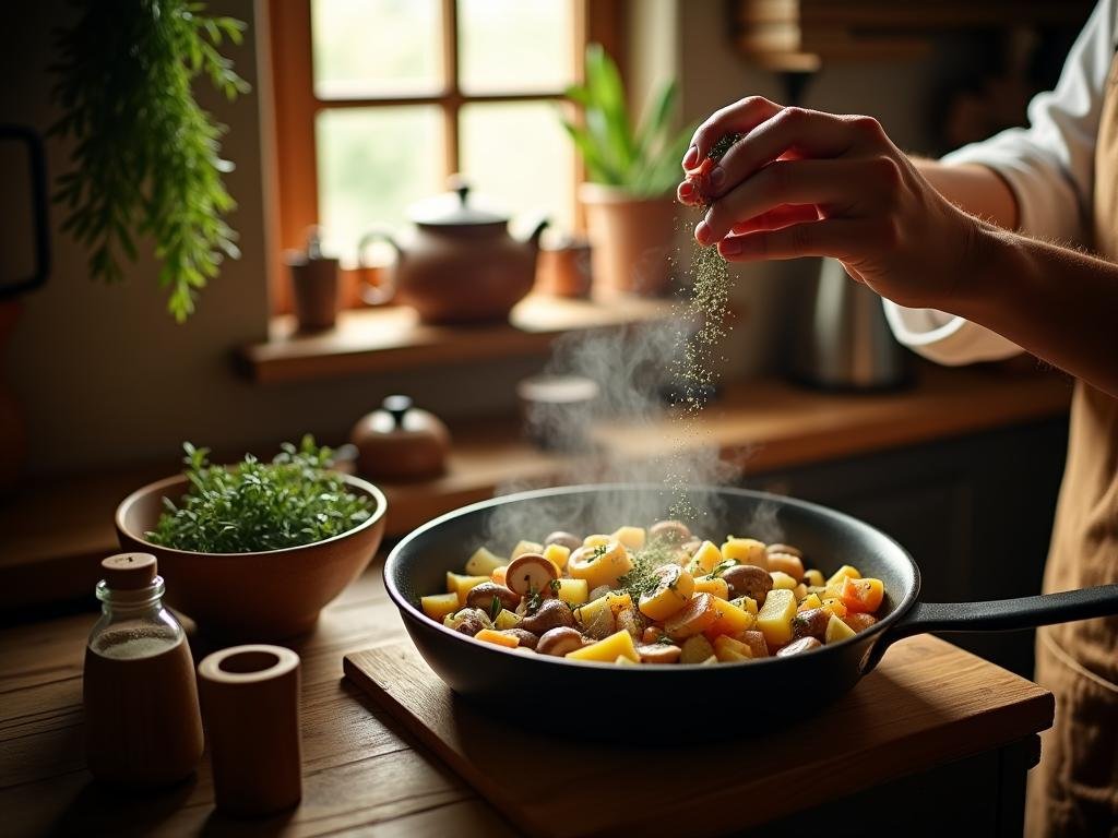 For optimal flavor, use a mix of mushrooms like shiitake, cremini, or button to add diverse textures and umami depth. When sautéing the onions, allow them to become translucent to build a sweet base before adding garlic, which should only be cooked briefly to prevent bitterness. Ensure potatoes are evenly cubed to promote uniform cooking; pre-roasting enhances their texture and flavor profile. To achieve a balanced dish, season mushrooms and potatoes with coarse salt and black pepper, adjusting to taste. Incorporate fresh or dried thyme or rosemary to impart an earthy, aromatic quality; these herbs complement the mushrooms splendidly. For a fresh finish, consider garnishing with chopped parsley or dill, which will add a pop of color and a hint of brightness to the dish.