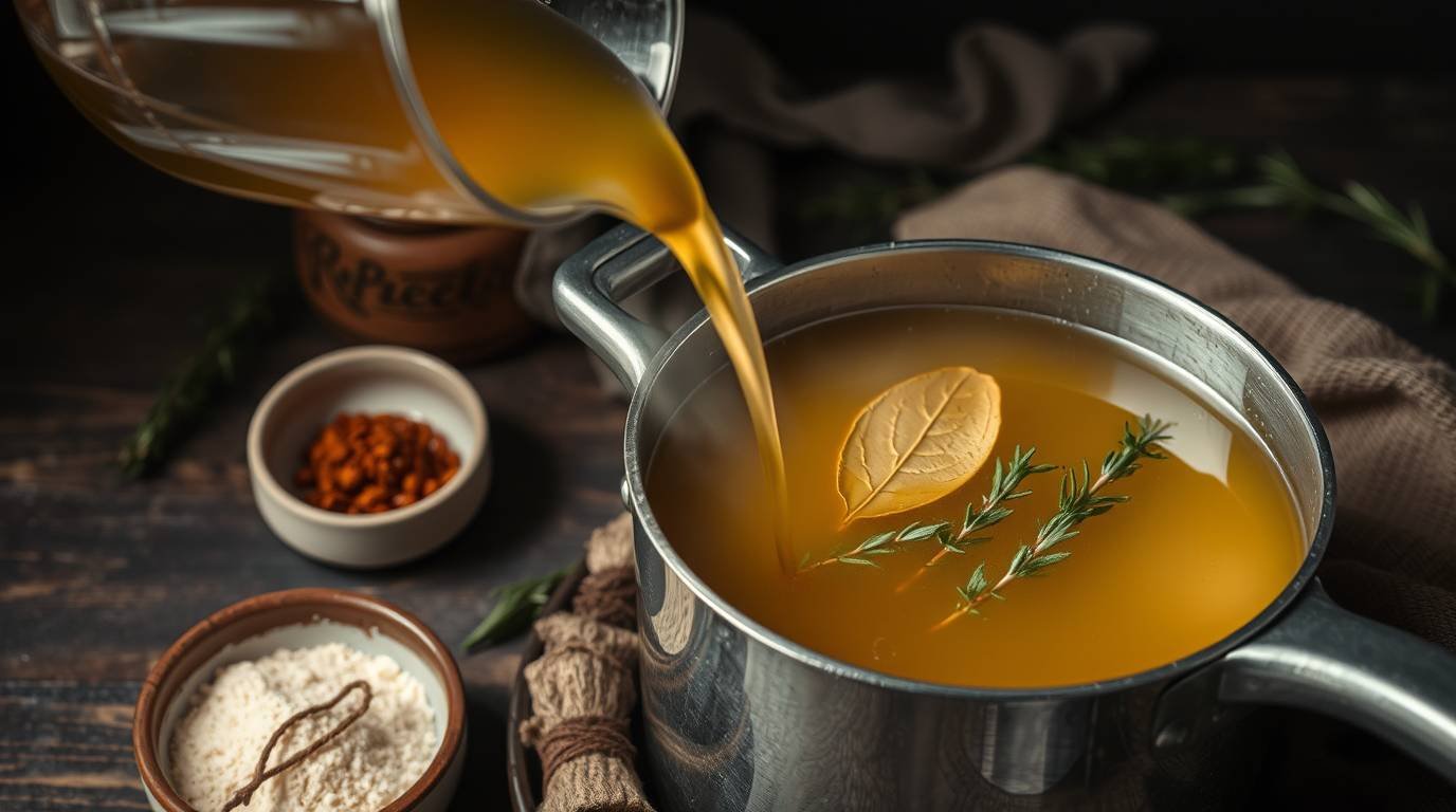Pour in the vegetable broth and add soy sauce, balsamic vinegar, bay leaf, thyme, rosemary, smoked paprika, black pepper, and sea salt. Bring the mixture to a gentle boil.